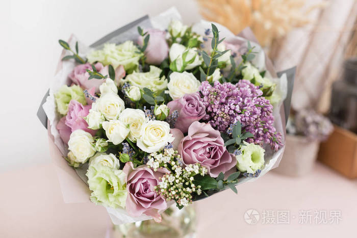 特写 壁纸春天的心情 美丽的豪华花束的混合花在女人的手 花店里花匠的工作 水平照片照片 正版商用图片0nmgoh 摄图新视界